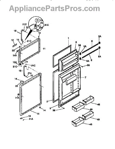 Parts for Kenmore 253.9366421 (2539366421, 253 9366421): Doors Parts