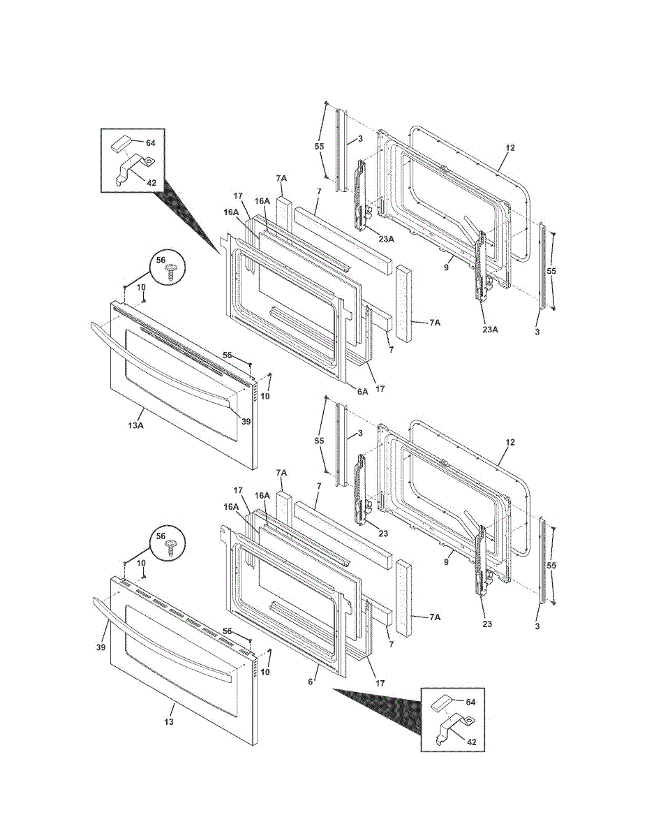 Replacement door handle for electric wall ovens, gas ranges, and warming drawers. Restores secure grip when original is cracked, broken, or missing.