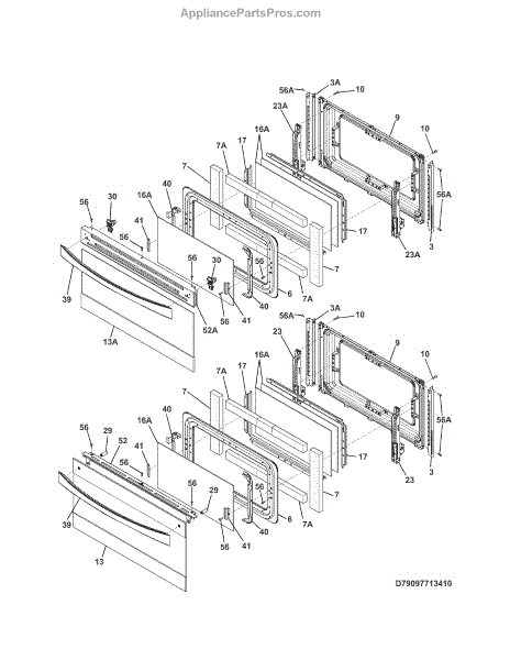 This door assembly replaces a damaged or dented outer refrigerator door to restore a clean exterior and proper sealing. It provides the structural panel and mounting points needed for door hardware and trim. What it does: