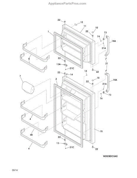 The Handle Mounting Block is an OEM part for Frigidaire refrigerators. This component anchors the refrigerator door handle assembly while also reinforcing the door structure. Causes of a bad mounting block can include cracks developing from repeated opening/closing stresses, broken fasteners loosening its installation, or residual damage during door replacement or repair attempts. Symptoms of a bad handle mounting block include: