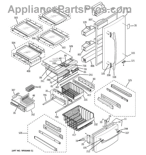 Parts for Ge GBS20KBRDWW: 01 - Doors & Shelves Parts