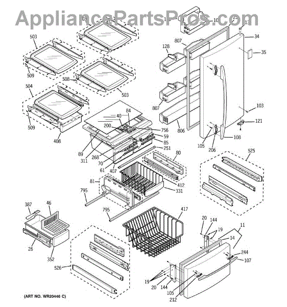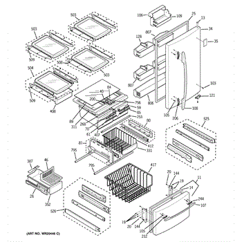 Parts for Ge GDL20KCSCBS: 01 - Doors & Shelves Parts