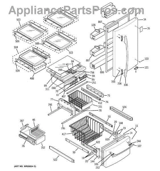 Parts for Ge GDS20KCSAWW: 01 - Doors & Shelves Parts