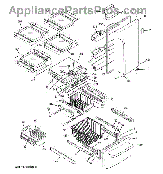 Parts for Ge GDS20SCSBSS: 01 - Doors & Shelves Parts