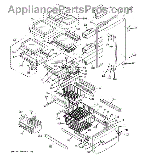 Parts for Ge PDS20MFSBBB: 01 - Doors & Shelves Parts