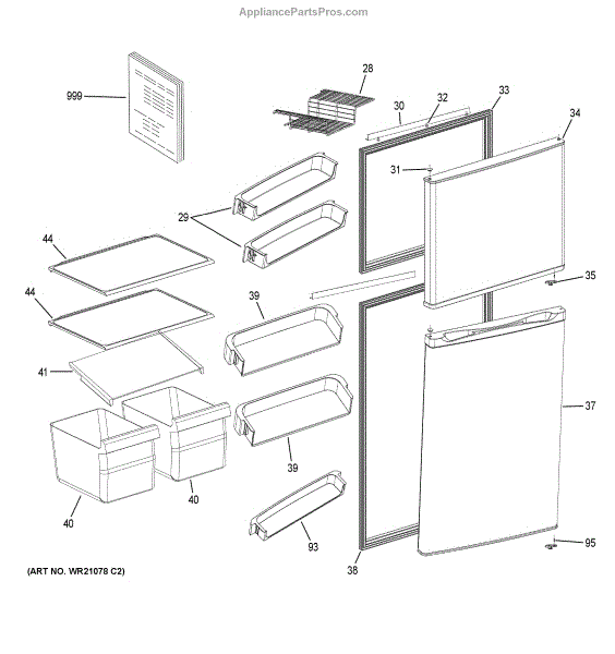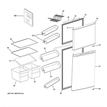 The Fixed Door Shelf is an OEM replacement part for GE refrigerators. It is designed to fit on the refrigerator door, providing storage space for bottles, jars, and other items.