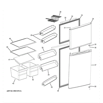The Fixed Door Shelf is an OEM replacement part for GE refrigerators. It is designed to fit on the refrigerator door, providing storage space for bottles, jars, and other items.