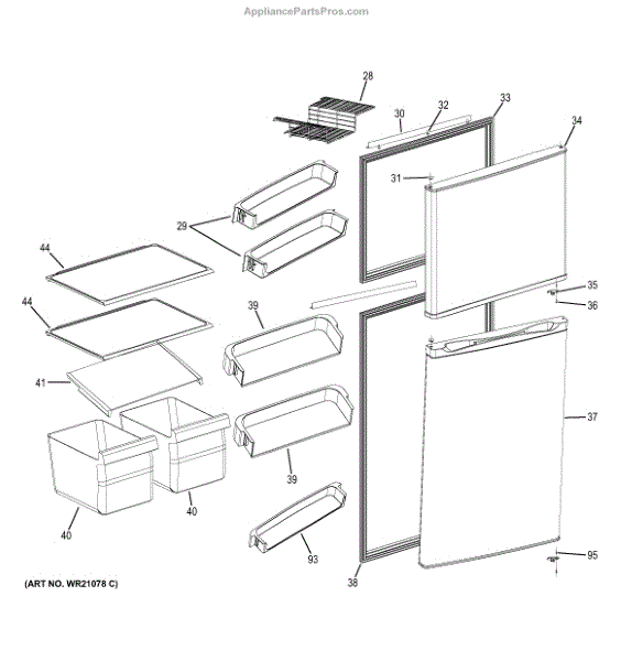 The Fixed Door Shelf is an OEM replacement part for GE refrigerators. It is designed to fit on the refrigerator door, providing storage space for bottles, jars, and other items.