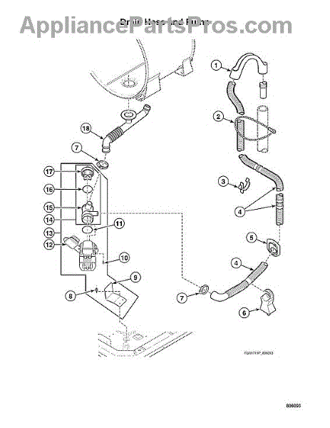 This tub-to-pump drain hose connects the washer tub to the drain pump, routing wastewater from the wash tub to the pump for removal. Replacing a worn or damaged hose helps stop leaks and restore reliable draining. What it does: