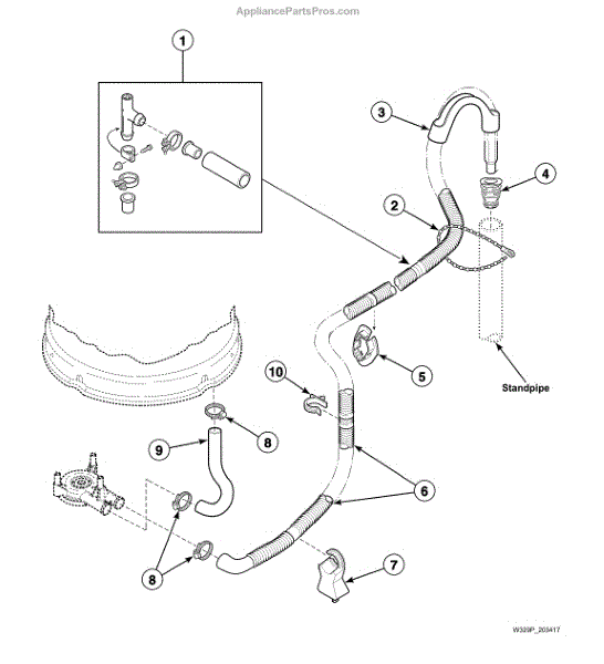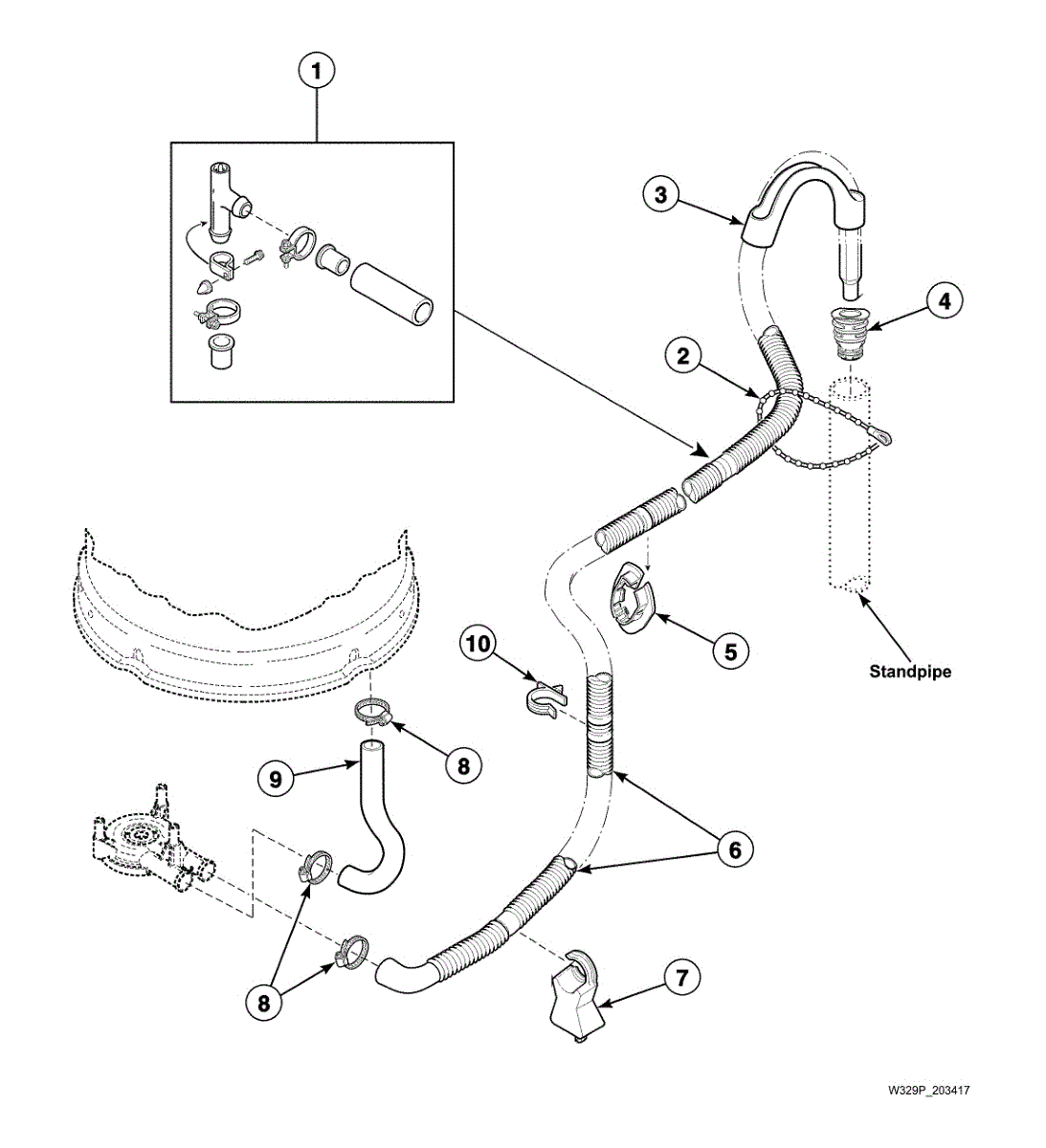 Use this drain extension kit to extend your washer's drain hose so it reaches the standpipe or laundry sink. It provides a secure, routed connection that supports proper draining and helps prevent leaks from overstretched or improvised hookups.