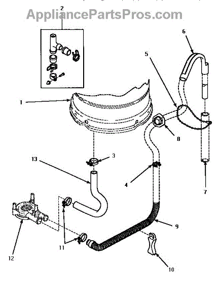Parts for Amana LWM423L-P1176404WL: Drain Hose & Siphon Break Parts