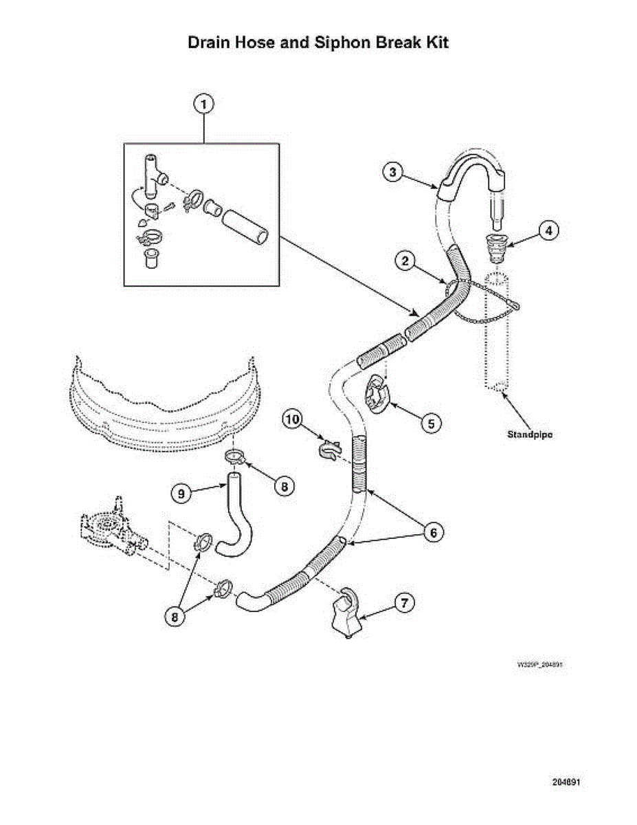 Parts for Speed Queen AWN632SP116TW01: Drain Hose / Siphon Break Kit Parts