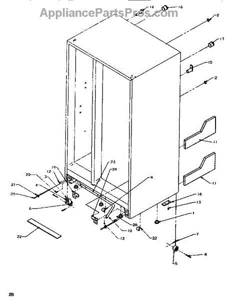 Parts for Amana SB520SW-P1185001WW: Drain & Rollers & Cabinet Back Parts