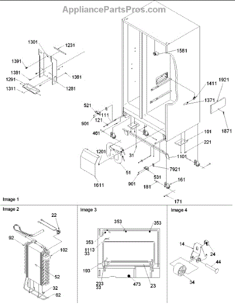 Parts for Amana ARS2366AB-PARS2366AB0: Drain, Rollers & Evap Assy Parts