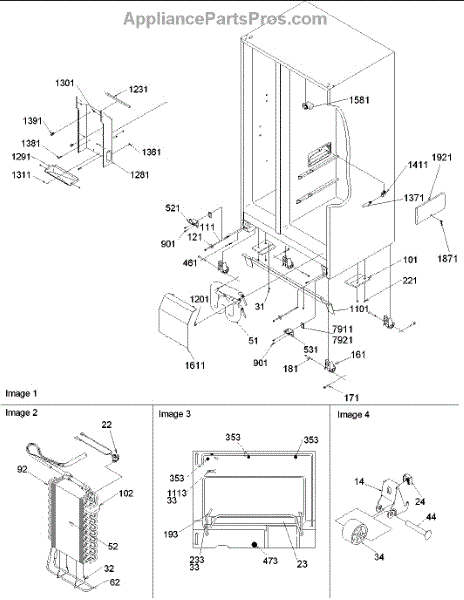Parts for Amana ARS2367AB-PARS2367AB0: Drain, Rollers & Evap Assy Parts