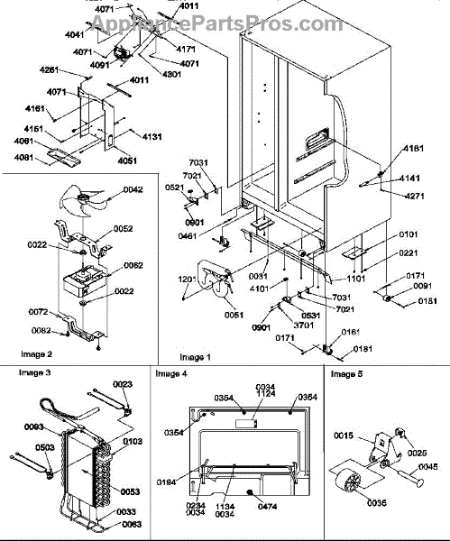 Parts for Amana SRD325S5L-P1307201WL: Drain Systems, Rollers, And Evaporator Assy Parts