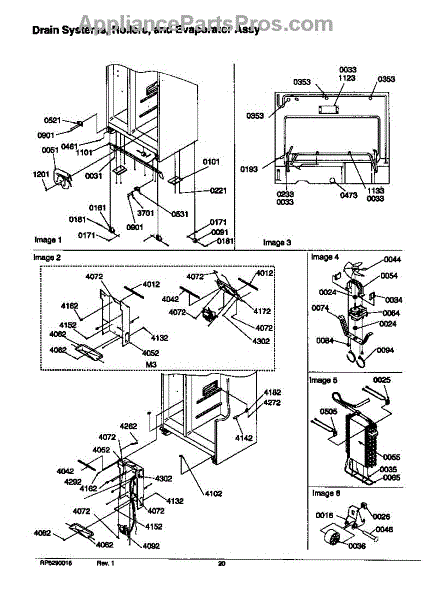 Parts for Amana SRD526SL-P1184802WL: Drain Systems, Rollers, And Evaporator Assy Parts
