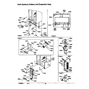 Parts for Amana SRD526TW-P1310201WW: Drain Systems, Rollers, And Evaporator Assy Parts