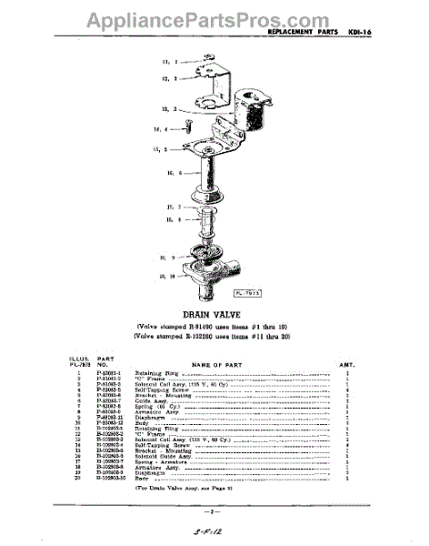 Parts for Kitchenaid KDI16: 03 - Drain Valve Parts