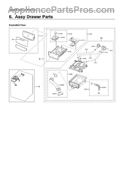 The Washer Detergent Drawer Assembly is an essential replacement part for your Samsung washer, ensuring optimal performance and convenience. This genuine OEM part is designed to seamlessly integrate with your existing appliance, offering a reliable solution when your original detergent drawer is worn out or damaged. Crafted with precision, the assembly provides smooth operation for loading and dispensing detergent, fabric softener, and bleach, enhancing your washing experience. Its durable construction resists daily wear and tear, maintaining the functionality and appearance of your washer. Installing the Washer Detergent Drawer Assembly helps prevent leaks and ensures that your laundry processes are efficient and mess-free. Compatible with a wide range of Samsung washer models, this part guarantees a perfect fit and easy installation, allowing you to quickly restore your appliance to its best working condition. Choose this genuine OEM part to maintain the reliability and effectiveness of your Samsung washer, providing you with peace of mind and excellent laundry results.