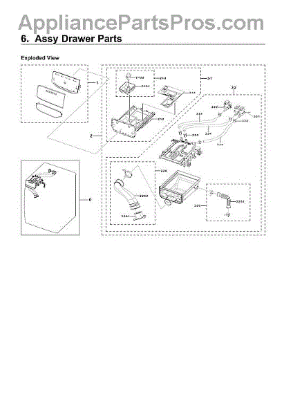 The Washer Detergent Drawer Assembly is an essential replacement part for your Samsung washer, ensuring optimal performance and convenience. This genuine OEM part is designed to seamlessly integrate with your existing appliance, offering a reliable solution when your original detergent drawer is worn out or damaged. Crafted with precision, the assembly provides smooth operation for loading and dispensing detergent, fabric softener, and bleach, enhancing your washing experience. Its durable construction resists daily wear and tear, maintaining the functionality and appearance of your washer. Installing the Washer Detergent Drawer Assembly helps prevent leaks and ensures that your laundry processes are efficient and mess-free. Compatible with a wide range of Samsung washer models, this part guarantees a perfect fit and easy installation, allowing you to quickly restore your appliance to its best working condition. Choose this genuine OEM part to maintain the reliability and effectiveness of your Samsung washer, providing you with peace of mind and excellent laundry results.