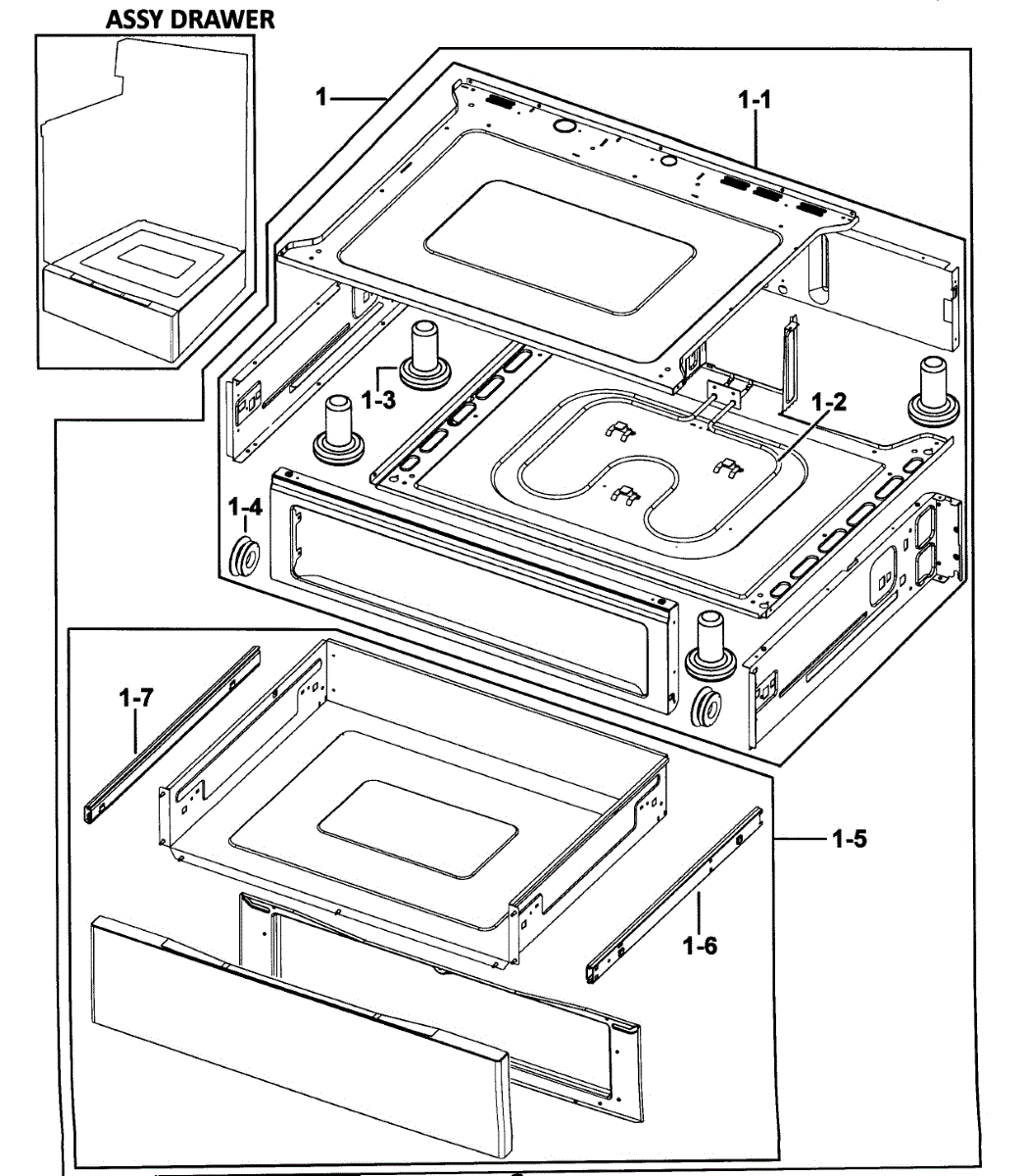 The Range Drawer Assembly is designed to fit seamlessly into your range, providing a secure and functional drawer space. This genuine OEM part ensures compatibility with Samsung ranges, guaranteeing a precise fit and reliable performance. The durable construction of the Range Drawer Assembly enhances the organization of your kitchen, making it easier to store cookware, utensils, and other essentials. Installing this assembly restores your range's functionality, especially if your original drawer is worn, damaged, or missing. With the Range Drawer Assembly, you can enjoy a well-organized and efficient cooking environment, supported by a genuine OEM part that maintains the quality and performance of your Samsung range.