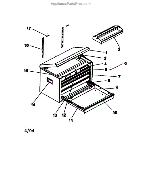 Parts for Craftsman 706596142: 5 Drawer Ball Bearing Chest Parts
