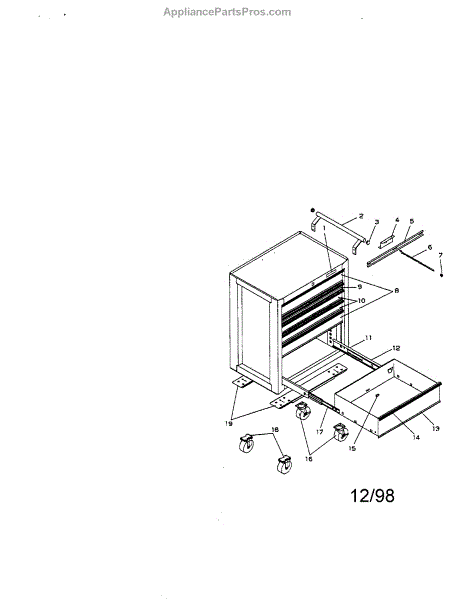Parts for Craftsman 706659470: Drawer Ball Bearing Roll Away Parts
