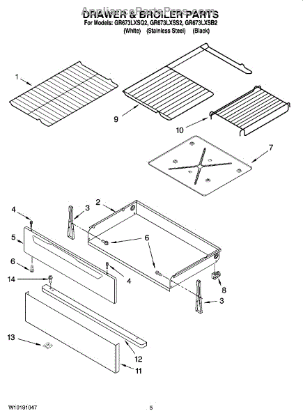 Parts for Whirlpool GR673LXSQ2: 04 - Drawer & Broiler Parts