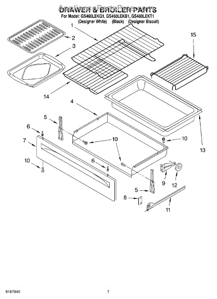 Parts for Whirlpool GS460LEKT1: 05 - Drawer And Broiler Parts