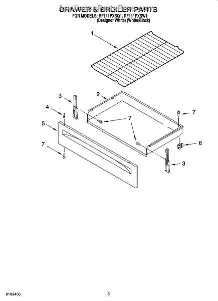 Parts for Whirlpool RF111PXSW1: 04 - Drawer & Broiler Parts
