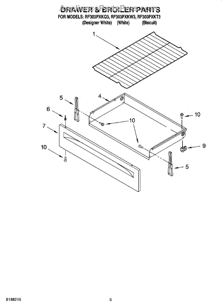 Parts for Whirlpool RF303PXKQ3: 04 - Drawer & Broiler Parts