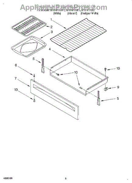 Parts for Whirlpool RF314PXGN1: 04 - Drawer And Broiler Parts