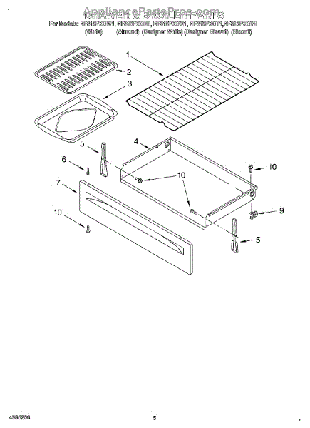 Parts for Whirlpool RF315PXGT1: 04 - Drawer And Broiler Parts