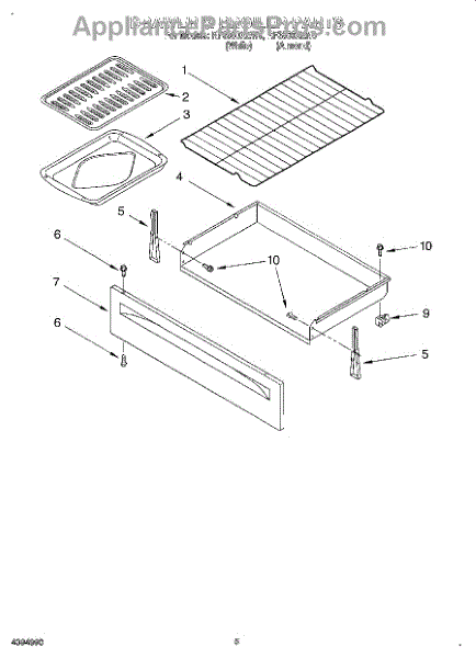 Parts for Whirlpool RF3500XEW0: 04 - Drawer And Broiler Parts