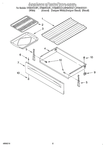 Parts for Whirlpool RF362BXGT1: 04 - Drawer & Broiler Parts