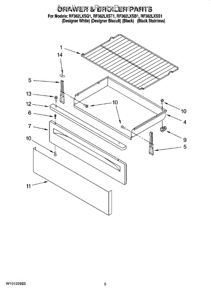 Parts for Whirlpool RF362LXSS1: 04 - Drawer & Broiler Parts