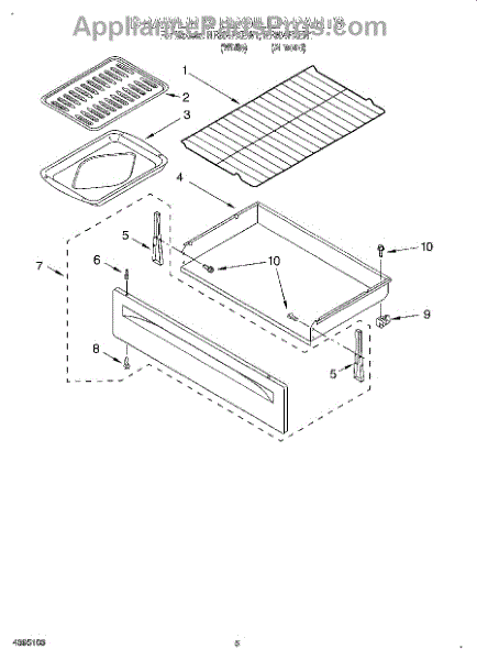 Parts for Whirlpool RF364PXEN1: 04 - Drawer And Broiler Parts