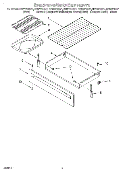 Parts for Whirlpool RF377PXGZ1: 04 - Drawer & Broiler Parts