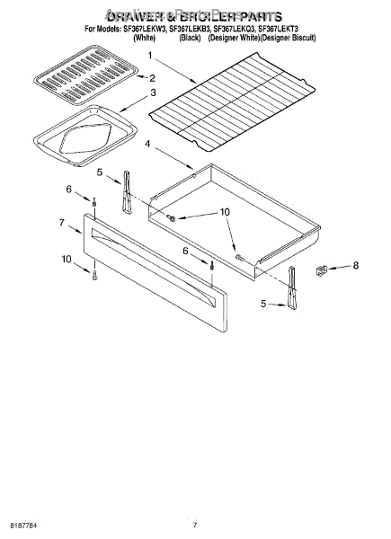 Parts for Whirlpool SF367LEKQ3: 05 - Drawer & Broiler Parts
