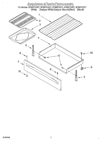 Parts for Whirlpool SF385PEGZ7: 05 - Drawer & Broiler Parts