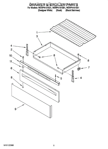 Parts for Whirlpool WERP4101SB1: 04 - Drawer & Broiler Parts