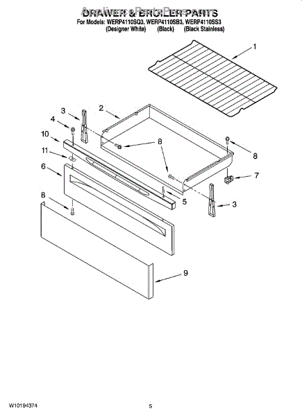 Parts for Whirlpool WERP4110SB3: 04 - Drawer & Broiler Parts