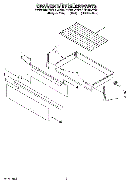 Parts for Whirlpool YRF115LXVS0: 04 - Drawer & Broiler Parts