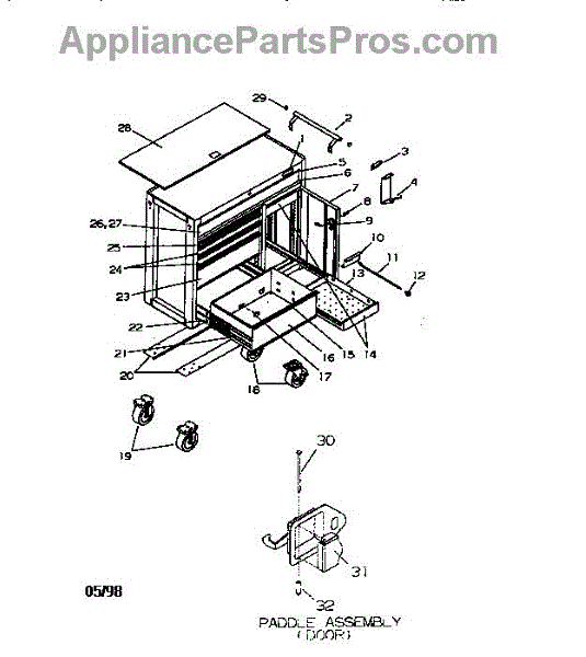 Parts for Craftsman 706650635: 40" 6 Drawer Cart Parts