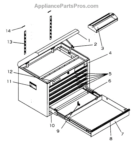 Parts for Craftsman 706596182: 6 Drawer Chest Parts