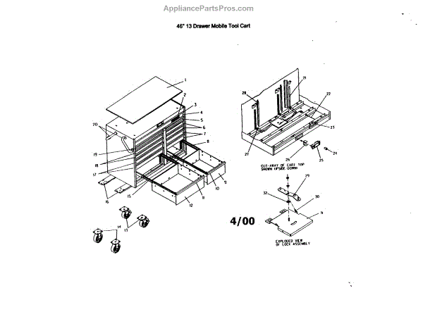 Parts for Craftsman 706655760: 46" 13 Drawer Mobile Tool Cart Parts