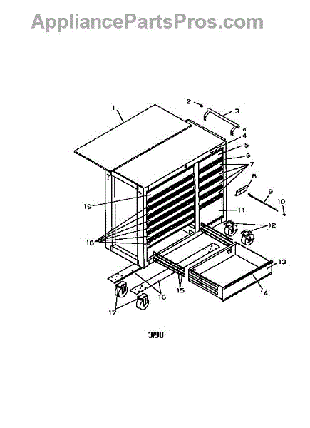 Parts for Craftsman 706659210: 40" 14 Drawer Mobile Tool Cart Parts
