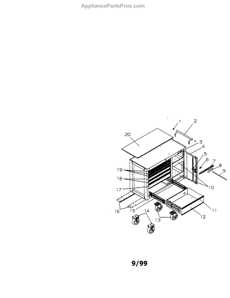 Parts for Craftsman 706653435: 40" 7 Drawer Mobile Toolcart Parts