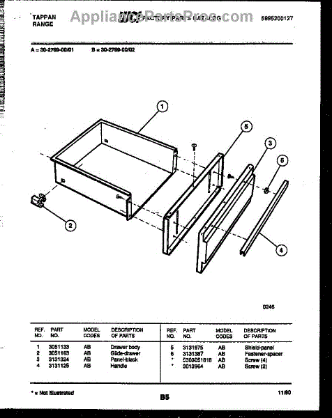 Parts for Frigidaire 30-2769-00-02: 07 - Drawer Parts